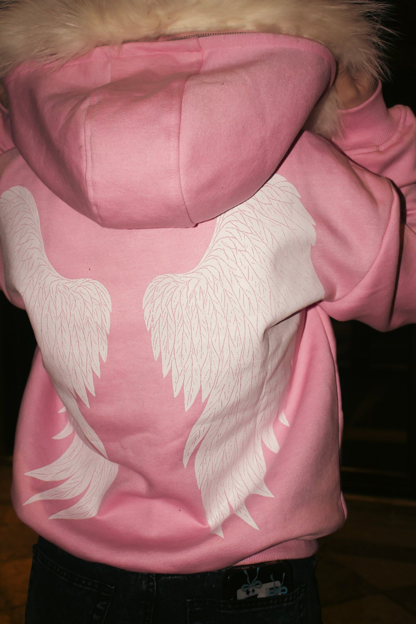 Detailed printed angel wings.